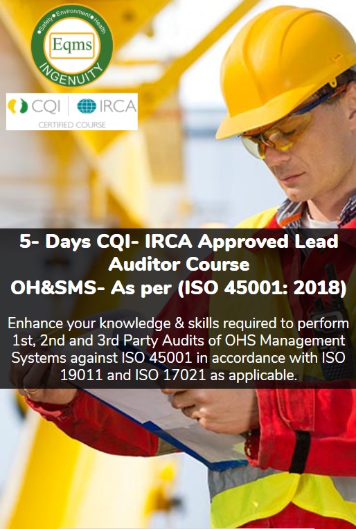 • This CQI- IRCA Lead Auditor OHSAS 45001: 2008 course duration is for 5- days.